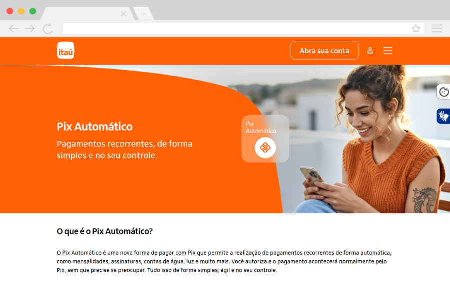 • PIX Automático: Nessa opção, o cliente final pode ativar a recorrência de pagamento, permitindo que o valor da fatura seja debitado automaticamente todos os meses. Isso simplifica o processo de cobrança e elimina a necessidade de lembrar o vencimento.